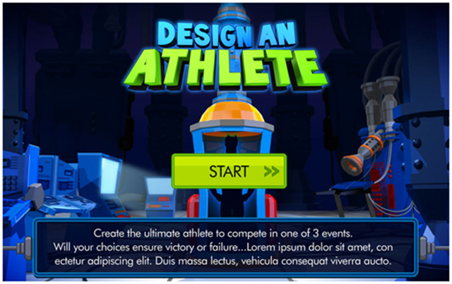 This is a touch screen interactive done working with Museums Sheffield. It is currently at Weston Park Museum in Sheffield for 9 months before moving to the V&A Museum. In Design An Athlete you can create an athlete by selecting various body and muscle types, be careful though as your decisions will affect your athlete's performance in your chosen event... There should be an online version coming soon.