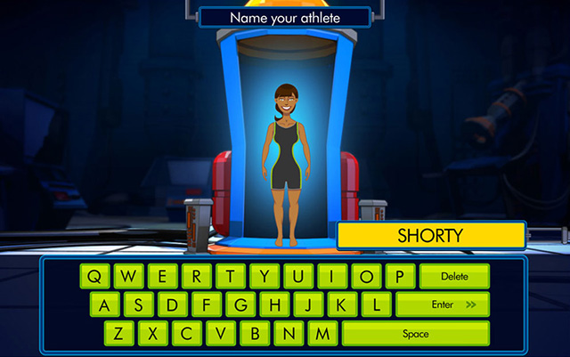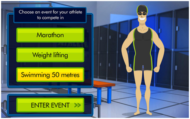 Create your own athlete by selecting various body and muscle types, enter into choosen event and email your creation.